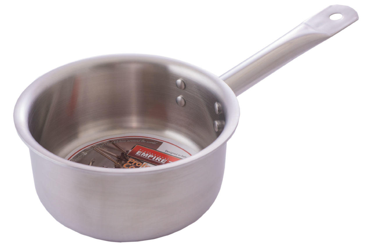 Ківш нержавіючий Empire діаметром 160 мм підійде для пасерування овочів і не тільки. У такому посуді можна буквально за 7-10 хвилин приготувати ароматний соус до м'яса, відварити вермішель або просто розігріти рибу, раніше приготовлену в сковороді. До інших переваг сотейника з нержавійки слід віднести підвищену стійкість до корозії, їдким абразивам, ударів і подряпин. Посилене дно і стінки сприяють рівномірному нагріванню поверхонь.