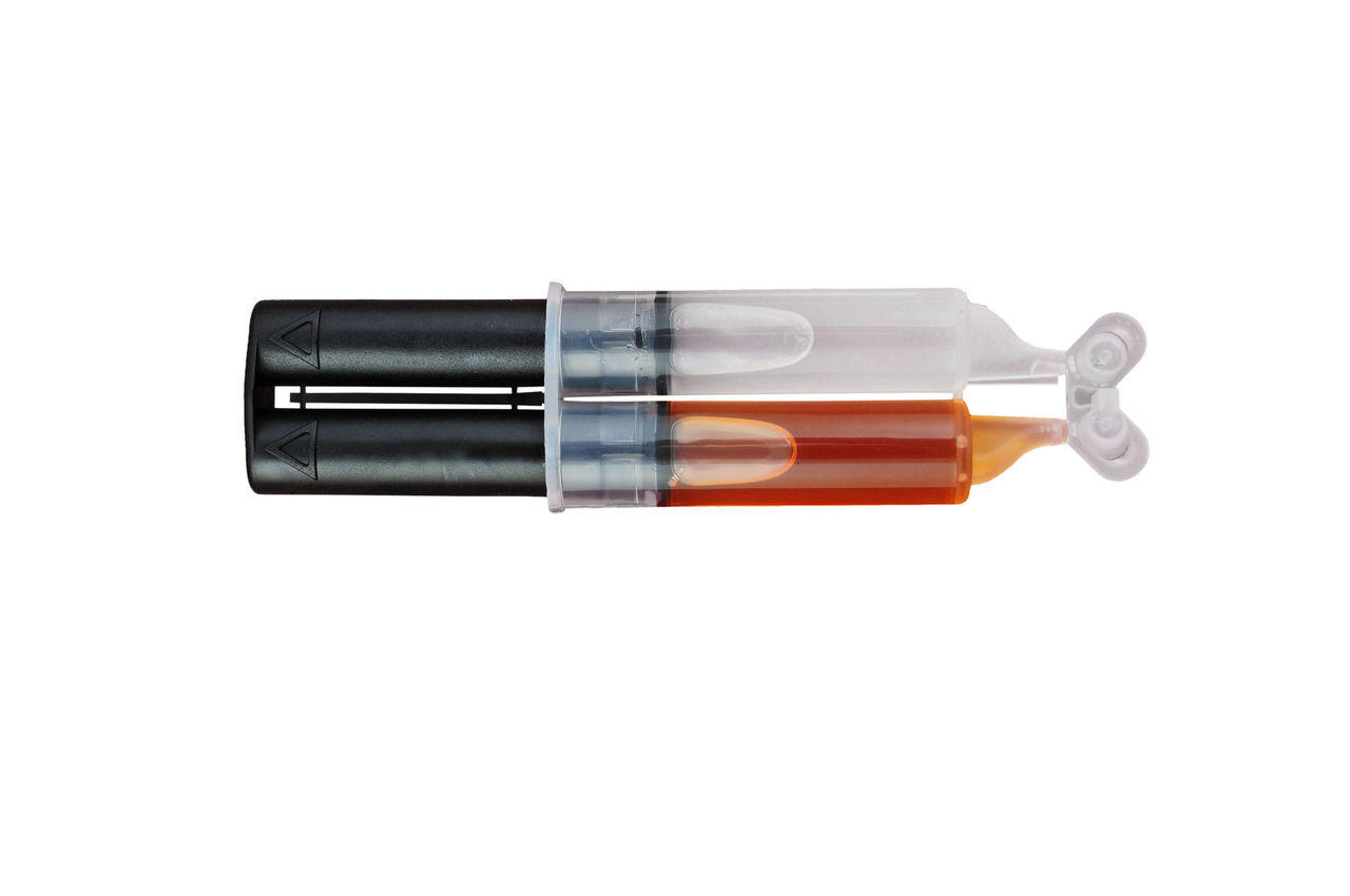 Двокомпонентний (смола + затверджувач) клей на основі епоксидної смоли. Універсальний, водостійкий. Забезпечує готовність склеєних поверхонь до використання через 24 години. Зручний у використанні. На виході зі шприца ви отримуєте готовий епоксидний клей. Висока міцність затверділого клею. Не міняє колір, не тріскається і не дає усадку. Чи не проводить електрику. Підходить для склеювання скла, порцеляни, кераміки, дерева, сталі, алюмінію, оргскла, каменю, мармуру, бетону і т.д.