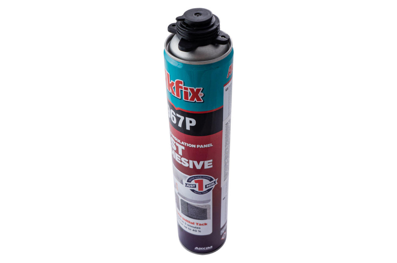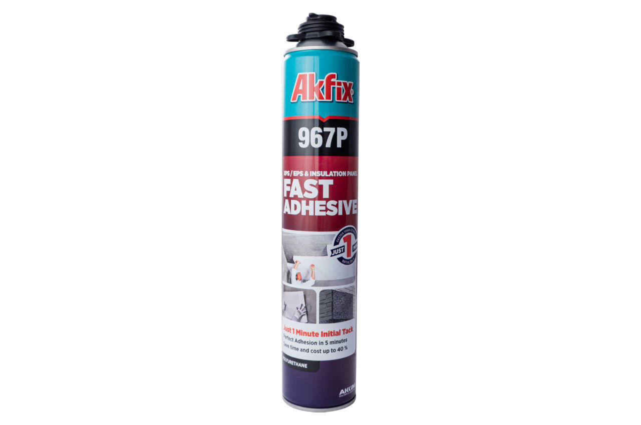 Клей поліуретановий Akfix - 750 мл 60 секунд 967P. Застосовується для швидкого та міцного склеювання всіх видів будівельних матеріалів, особливо теплоізоляційних плит. Протягом 60 секунд відбувається первісна адгезія, що надійно тримається через 5 хвилин.