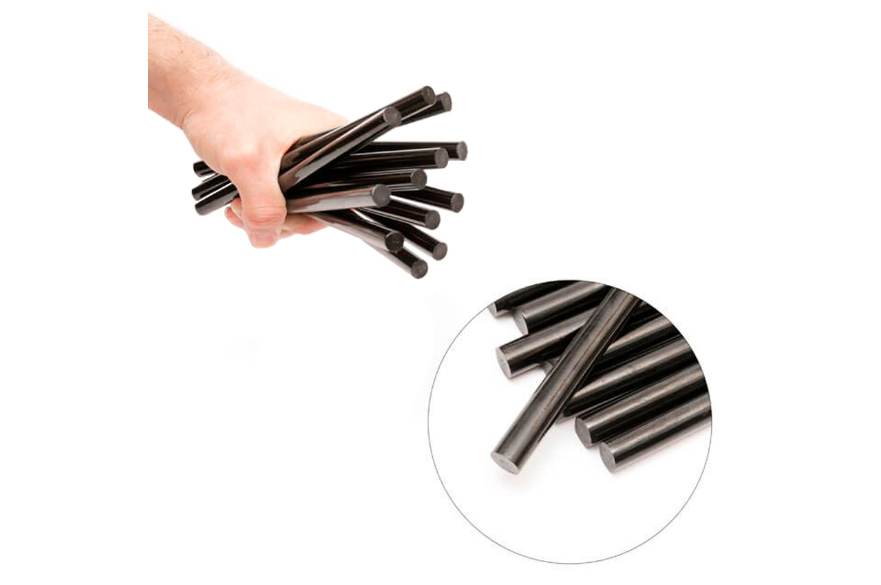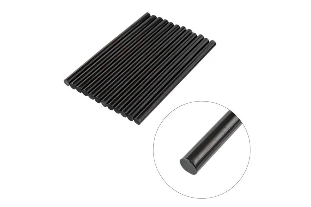 Чорні клейові стрижні - витратний матеріал для клейових пістолетів. Застосовуються для скріплення дерева, кераміки, пластмас, тканини, металу і проводів, а також інших матеріалів в різних поєднаннях. Стрижні виготовлені з високоякісної сировини марки Dupont. Завдяки цьому, високов'язкий клей дозволяє надійно скріплювати перераховані матеріали, затвердевая у міру охолодження. Температура розм'якшення: 85 сек; Час застигання: 30-40 сек; Температура текучості: 160-170 ° С; Довжина стержня: 200 мм; Діаметр стрижня: 11.2 мм; Колір чорний; Кількість в упаковці: 12 од .; Вага упаковки: 0.275 кг