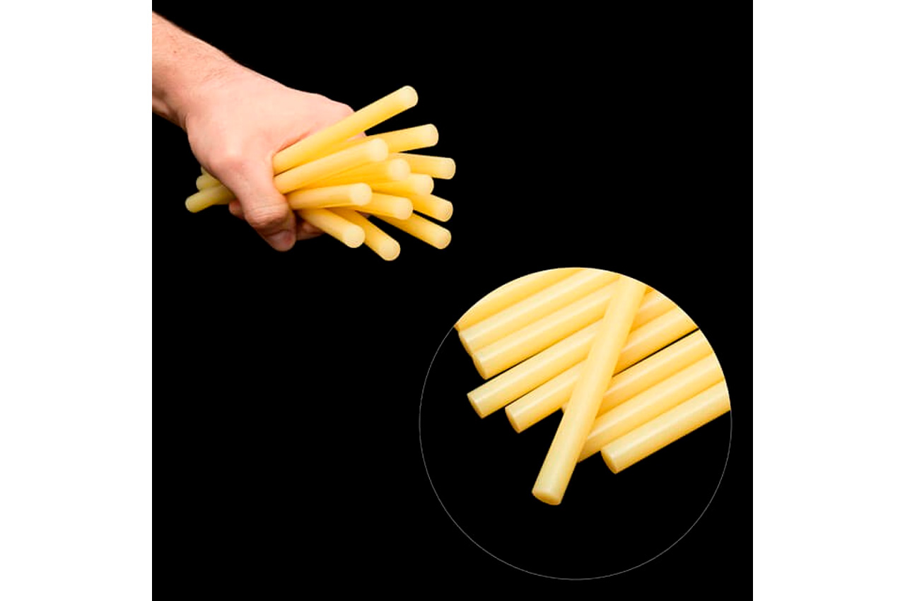 Жовті клейові стрижні - витратний матеріал для клейових пістолетів. Застосовуються для скріплення дерева, кераміки, пластмас, тканини, металу і проводів, а також інших матеріалів в різних поєднаннях. Стрижні виготовлені з високоякісної сировини марки Dupont. Завдяки цьому, високов'язкий клей дозволяє надійно скріплювати перераховані матеріали, затвердевая у міру охолодження. Температура розм'якшення: 85 ° С; Час застигання: 30-40 сек; Температура текучості: 160-170 ° С; Довжина стержня: 200 мм; Діаметр стрижня: 11.2 мм; Колір жовтий; Кількість в упаковці: 12 од .; Вага упаковки: 0.275 кг