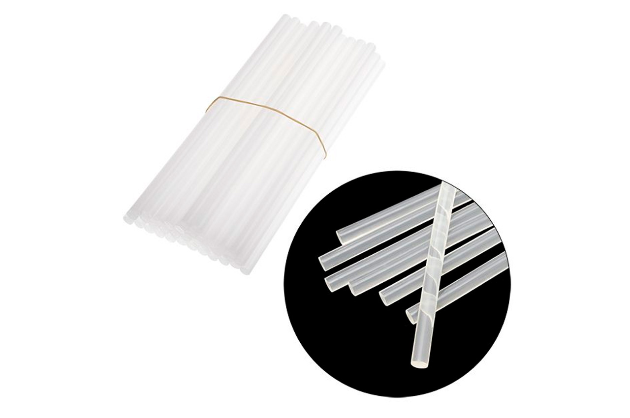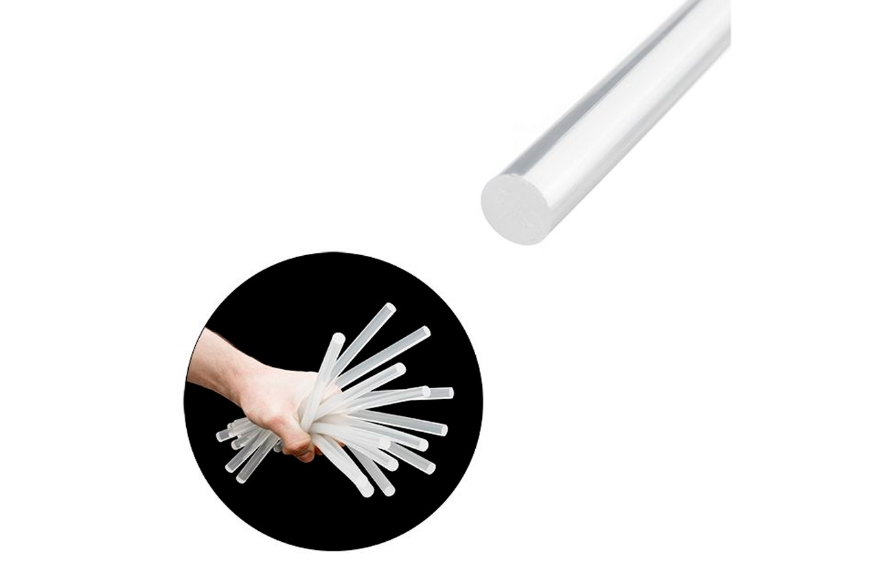 Комплект прозорих клейових стрижнів - витратний матеріал для клейових пістолетів. Прозорі клейові стрижні застосовуються для скріплення дерева, кераміки, пластмас, тканини, металу і проводів, а також інших матеріалів в різних поєднаннях. Стрижні виготовлені з високоякісної сировини марки Dupont. Завдяки цьому, напівпрозорий високов'язкий клей дозволяє надійно скріплювати перераховані матеріали, затвердевая у міру охолодження. Температура розм'якшення: 85 ° С; Час застигання: 30-40 сек; Температура текучості: 160-170 ° С; Довжина стержня: 300 мм; Діаметр стрижня: 11.2 мм; Колір: прозорий; Вага упаковки: 1 кг