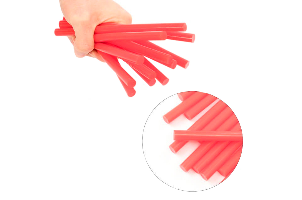 Термоклейові стрижні INTERTOOL-1042 підходять для більшості клейових пістолетів. Діаметр стрижня 11,2 мм, довжина 200 мм - одні з найбільш поширених і популярних розмірів. Дуже добре підходять для творчих виробів, декоративних робіт і для різнопланових побутових потреб. Ці універсальні силіконові стрижні ідеально склеюють папір, картон, дерево, тканину, кераміку, пластик, шкіру. Клейові стрижні червоного кольору, виготовлені з пластичного термоплавкого клею - етиленвінілацетату, безпечного для здоров'я. Особливості Зручні - досить зарядити стрижні в клейовий пістолет, і поверхні будуть склеєні всього одним натисканням на курок. Екологічні - термоклей складається з сополимера ЕВА, який нетоксичний, не виділяє запаху і не містить розчинників. Гарантують високоміцне склеювання і унікальний дизайн ваших виробів. Стійкі до вологи. Температура розм'якшення: 85 град; Час застигання: 30-40 сек; Температура текучості: 160-170 град; Довжина стержня: 200 мм; Діаметр стрижня: 11,2 мм; Колір червоний; Кількість в упаковці: 12 шт