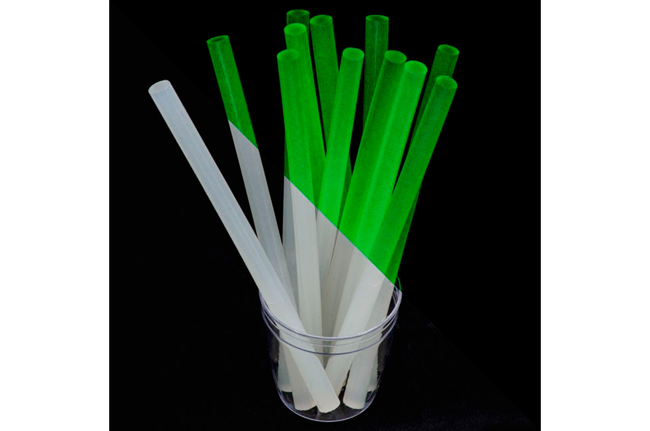 Флуоресцентні термоклеевие стрижні RT-1038 мають унікальну властивість, вони світяться в темряві зеленим світлом! Їх ще часто називають люмінофорним, люмінесцентним або самосветящимся клеєм. Ефект світіння довговічний - більше 30 років! Температура розм'якшення: 85 ° С; Температура текучості: 160-170 ° С; Час застигання: 30-40 сек; Кількість в упаковці: 12 шт; Довжина стержня: 200 мм; Діаметр стрижня: 11.2 мм; Особливості: світяться в темряві