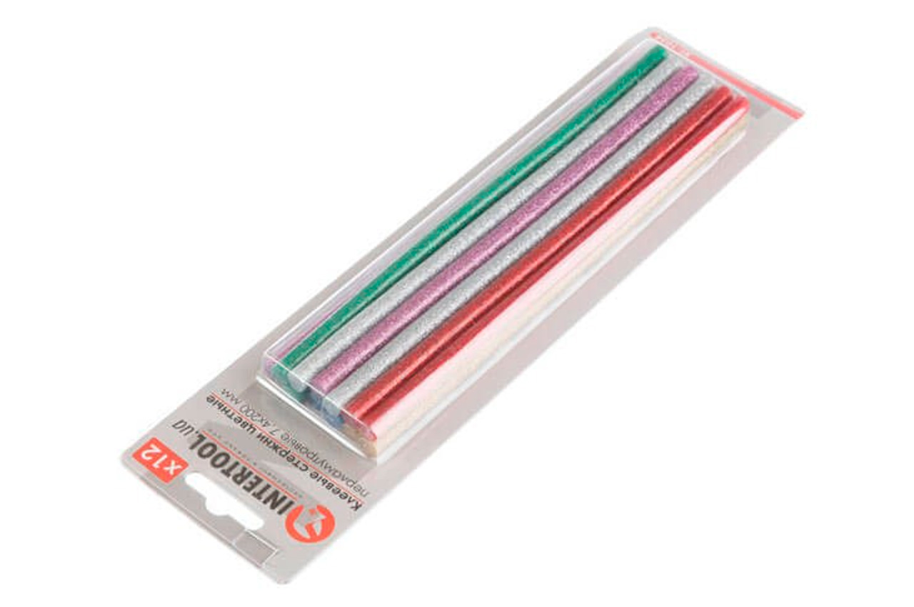 Клейові стрижні Intertool - 7,4 x 200 мм кольорові перламутрові (12 шт.)