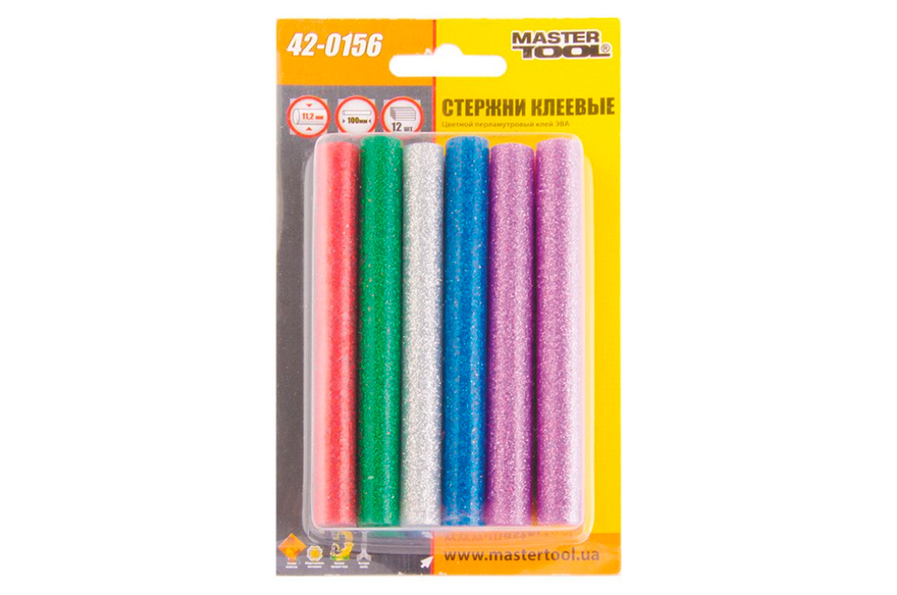 Клейові стрижні Mastertool - 11,2 x 100 мм кольорові перламутрові (12 шт.)