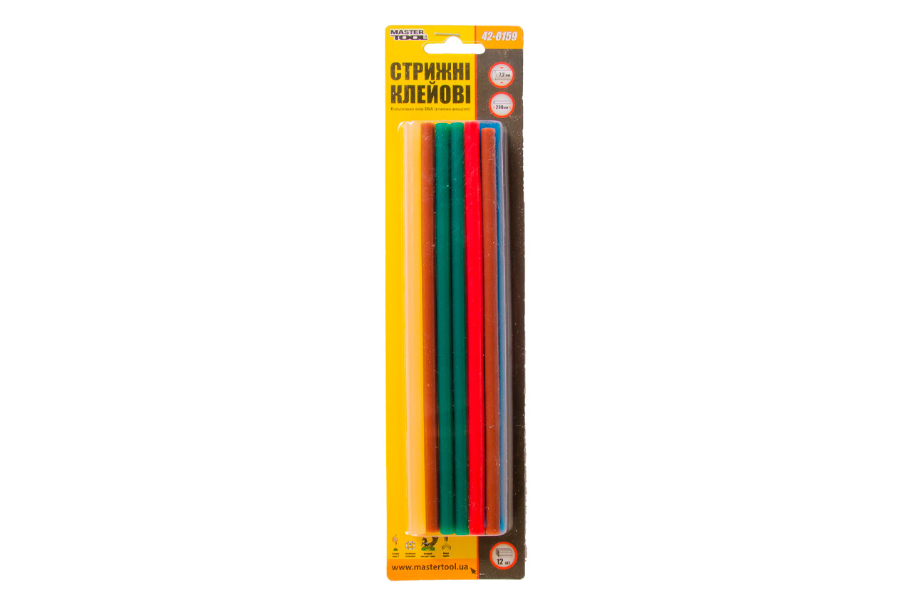 Клейові стрижні Mastertool - 7,2 x 200 мм кольорові (12 шт.)