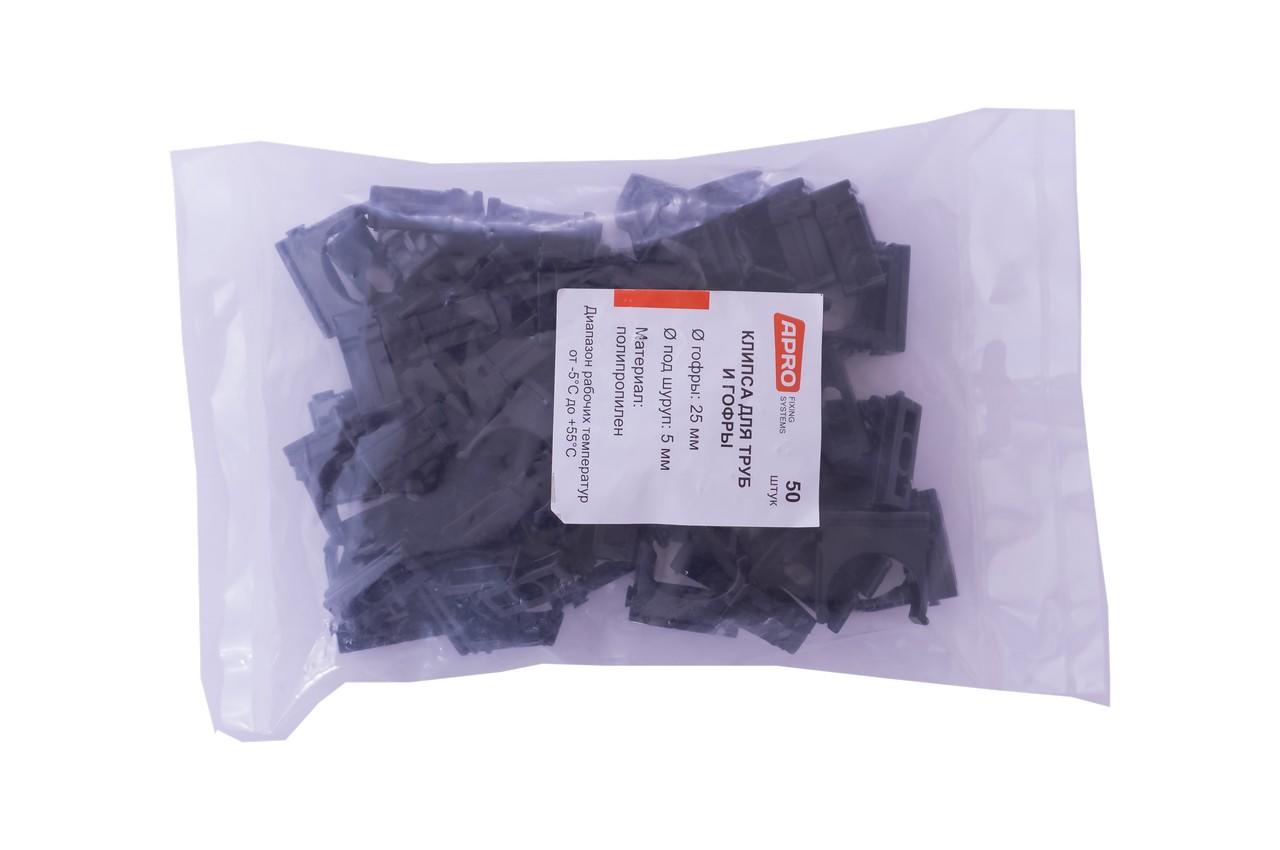 Кліпса для гофри Apro - 25 мм Чорна (50 шт.)