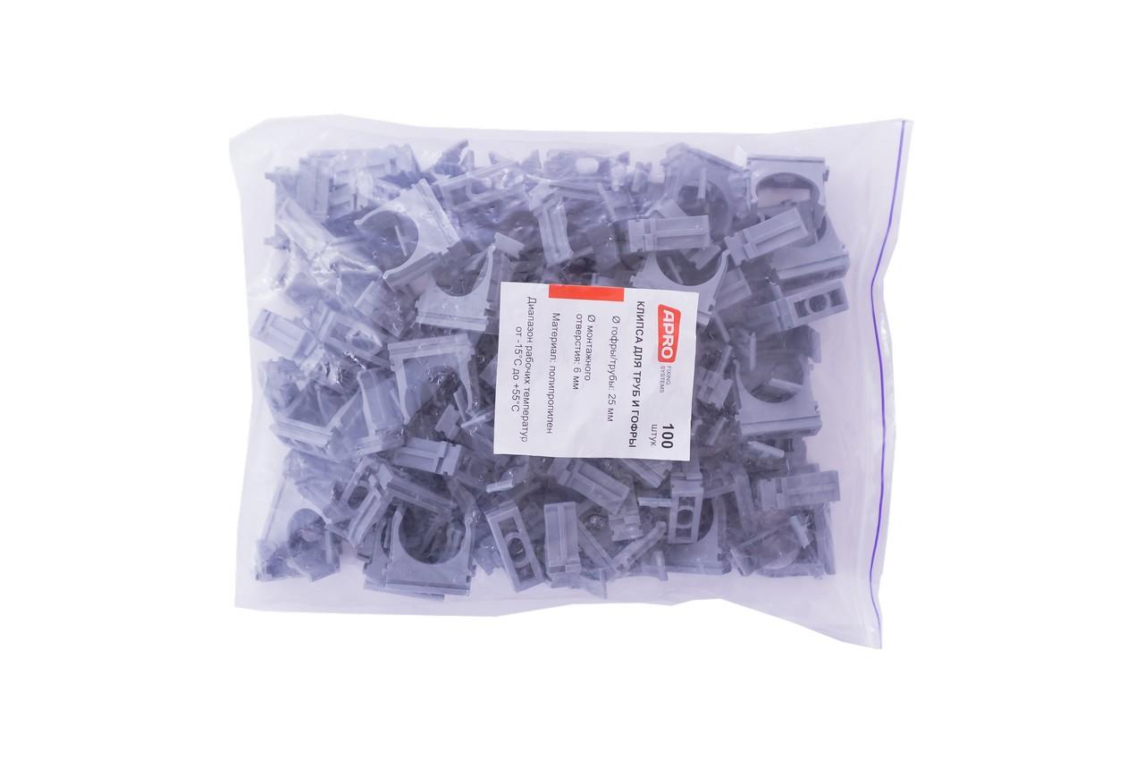Кліпса для гофри Apro - 25 мм сіра (50 шт.)
