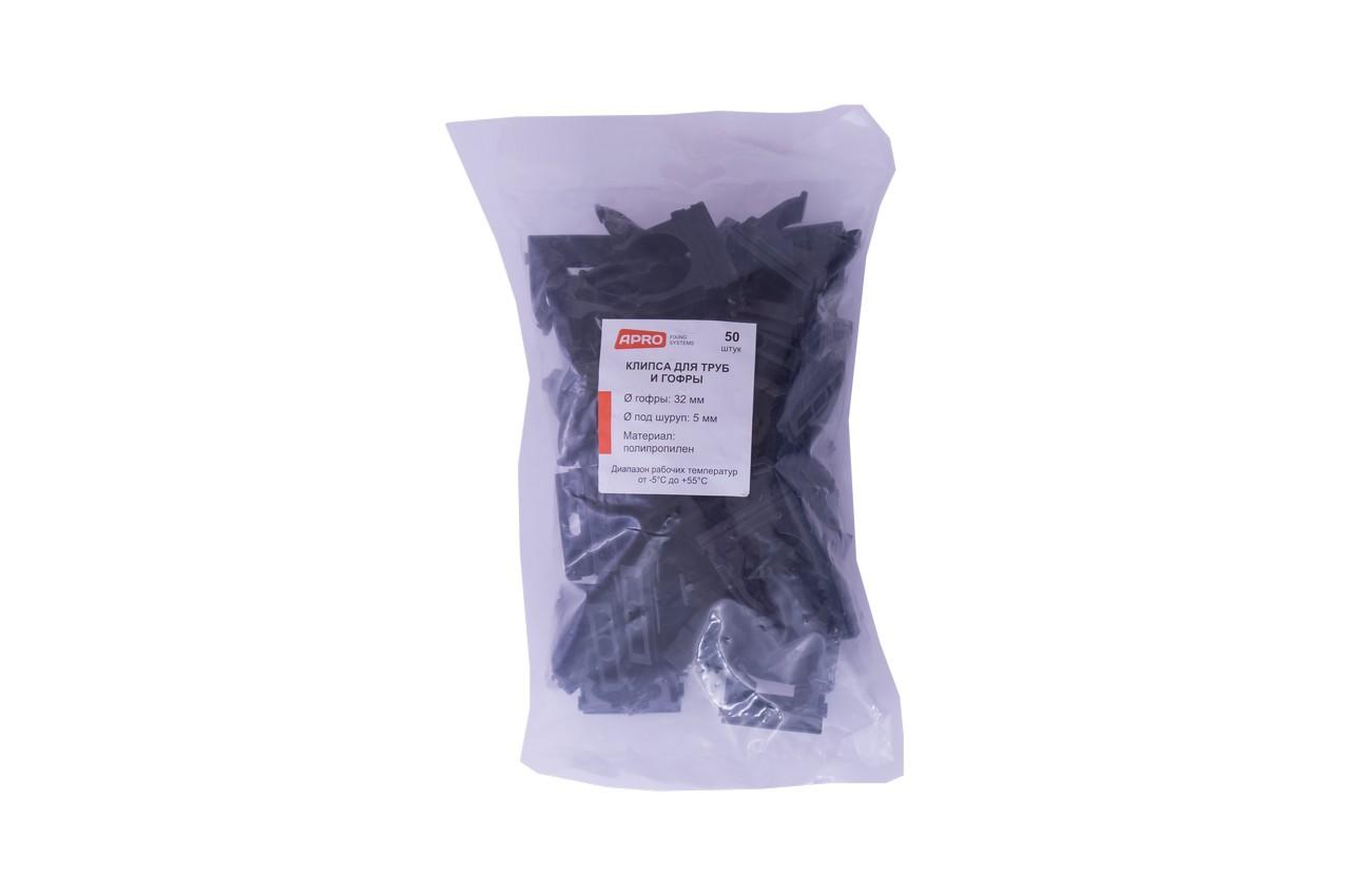 Кліпса для гофри Apro - 32 мм Чорна (50 шт.)
