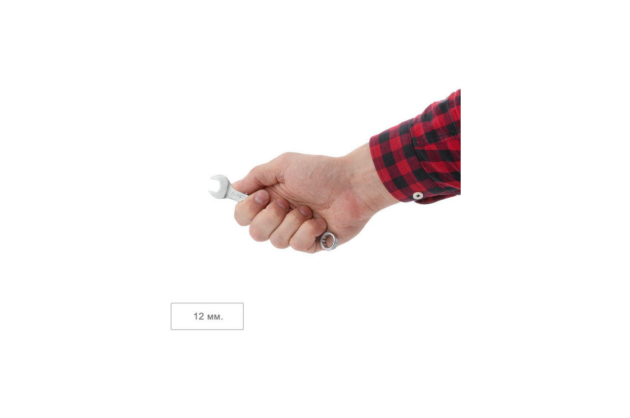 Комбінований рожково-накидний ключ, розміром 12 мм - це невід'ємний інструмент для виконання різних завдань на відкручування, закручування кріплень. Широко використовується в усіх сферах від побутового застосування до професійного, завдяки високим експлуатаційним характеристикам. Ключ виготовлений з міцної Cr-V стали, методом холодного штампування, що гарантує виняткову зносостійкість і довговічність. Відмінно витримує постійні навантаження і має високу антикорозійну стійкість завдяки тришаровому покриттю. Поверхня ключа також матоване сатин-хромом для надійного захоплення в роботу навіть забрудненими в маслі руками. Ви можете бути впевнені в якості ключа, адже його підтверджує довічна гарантія! Особливості: Надміцна, зносостійка Cr-V сталь, не схильна до деформацій. Ключ відповідає європейському стандарту якості DIN3113. Зручний в роботі - форма і вигин рукоятки ключа з оптимальним важелем для прикладення зусилля. Розмір ключа: 12 мм; Покриття: сатин-хром