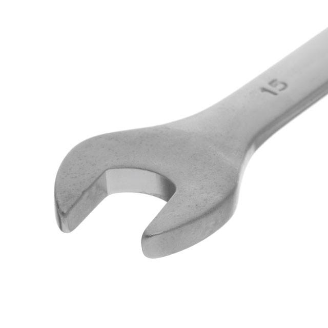 Комбінований ріжково-накидний ключ розміром 15 мм – це невід'ємний інструмент для виконання різних завдань на відкручування, закручування кріплень. Рожкова частина ключа дозволяє отримати зручний доступ до кріплення. Накидна частина з дванадцятьма гранями збільшує площу прилягання поверхонь та знижує ризик зриву граней гайок та болтів. Ключ виготовлений із міцної Cr-V сталі.