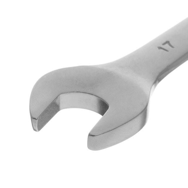 Комбінований ріжково-накидний ключ розміром 17 мм – це невід'ємний інструмент для виконання різних завдань на відкручування, закручування кріплень. Рожкова частина ключа дозволяє отримати зручний доступ до кріплення. Накидна частина з дванадцятьма гранями збільшує площу прилягання поверхонь та знижує ризик зриву граней гайок та болтів. Ключ виготовлений із міцної Cr-V сталі.