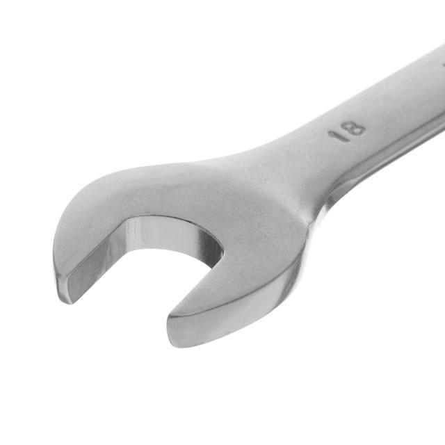 Комбінований ріжково-накидний ключ розміром 18 мм – це невід'ємний інструмент для виконання різних завдань на відкручування, закручування кріплень. Рожкова частина ключа дозволяє отримати зручний доступ до кріплення. Накидна частина з дванадцятьма гранями збільшує площу прилягання поверхонь та знижує ризик зриву граней гайок та болтів. Ключ виготовлений із міцної Cr-V сталі.