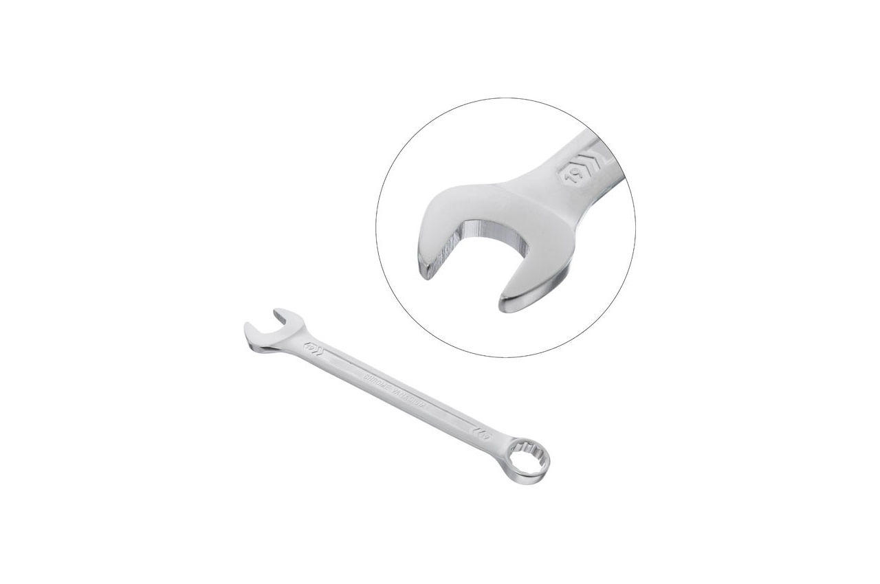 Комбінований рожково-накидний ключ, розміром 19 мм - це невід'ємний інструмент для виконання різних завдань на відкручування, закручування кріплень. Широко використовується в усіх сферах від побутового застосування до професійного, завдяки високим експлуатаційним характеристикам. Ключ виготовлений з міцної Cr-V стали, методом холодного штампування, що гарантує виняткову зносостійкість і довговічність. Відмінно витримує постійні навантаження і має високу антикорозійну стійкість завдяки тришаровому покриттю. Поверхня ключа також матоване сатин-хромом для надійного захоплення в роботу навіть забрудненими в маслі руками. Ви можете бути впевнені в якості ключа, адже його підтверджує довічна гарантія! Особливості: Надміцна, зносостійка Cr-V сталь, не схильна до деформацій. Ключ відповідає європейському стандарту якості DIN3113. Зручний в роботі - форма і вигин рукоятки ключа з оптимальним важелем для прикладення зусилля. Розмір ключа: 19 мм; Покриття: сатин-хром