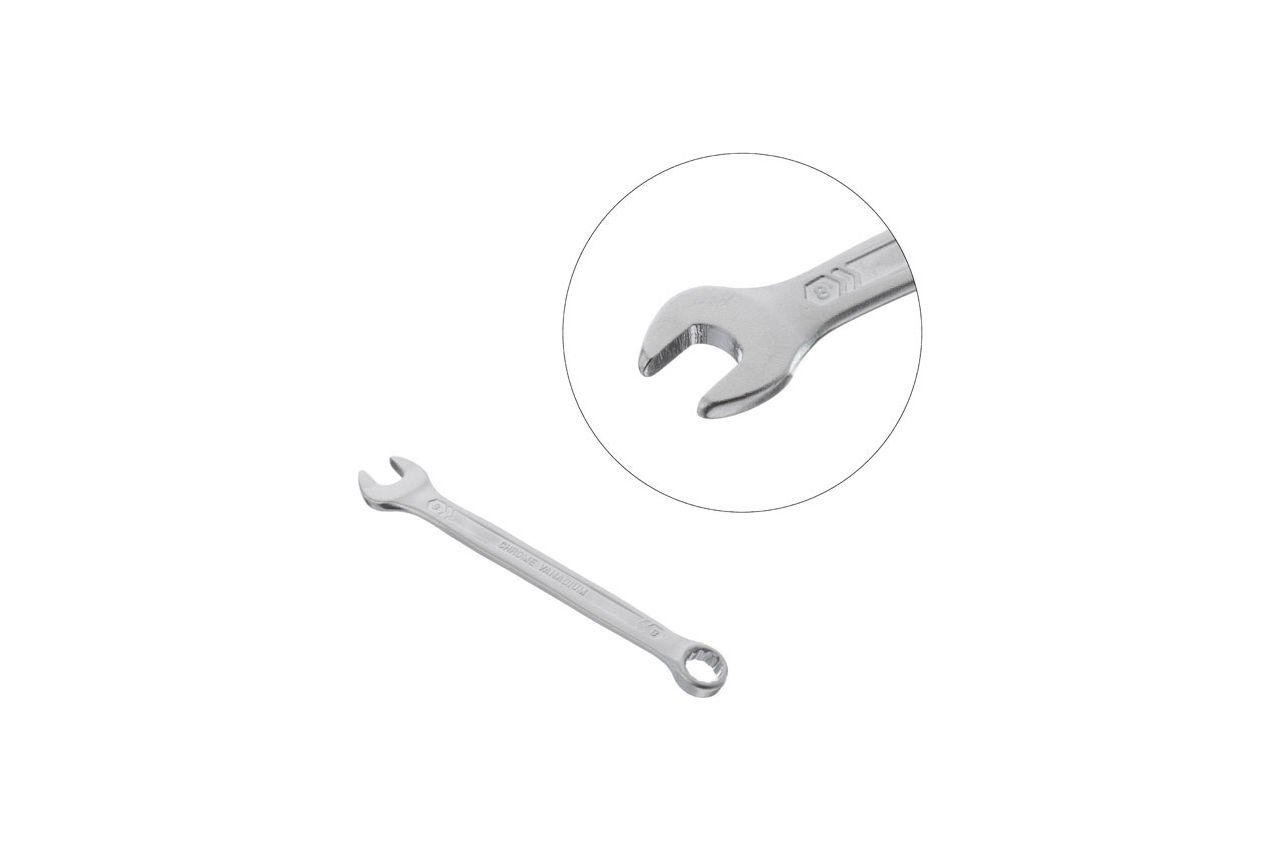 Комбінований рожково-накидний ключ, розміром 8 мм - це невід'ємний інструмент для виконання різних завдань на відкручування, закручування кріплень. Широко використовується в усіх сферах від побутового застосування до професійного, завдяки високим експлуатаційним характеристикам. Ключ виготовлений з міцної Cr-V стали, методом холодного штампування, що гарантує виняткову зносостійкість і довговічність. Відмінно витримує постійні навантаження і має високу антикорозійну стійкість завдяки тришаровому покриттю. Поверхня ключа також матоване сатин-хромом для надійного захоплення в роботу навіть забрудненими в маслі руками. Ви можете бути впевнені в якості ключа, адже його підтверджує довічна гарантія! Особливості: Надміцна, зносостійка Cr-V сталь, не схильна до деформацій. Ключ відповідає європейському стандарту якості DIN3113. Зручний в роботі - форма і вигин рукоятки ключа з оптимальним важелем для прикладення зусилля. Розмір ключа: 8 мм; Покриття: сатин-хром