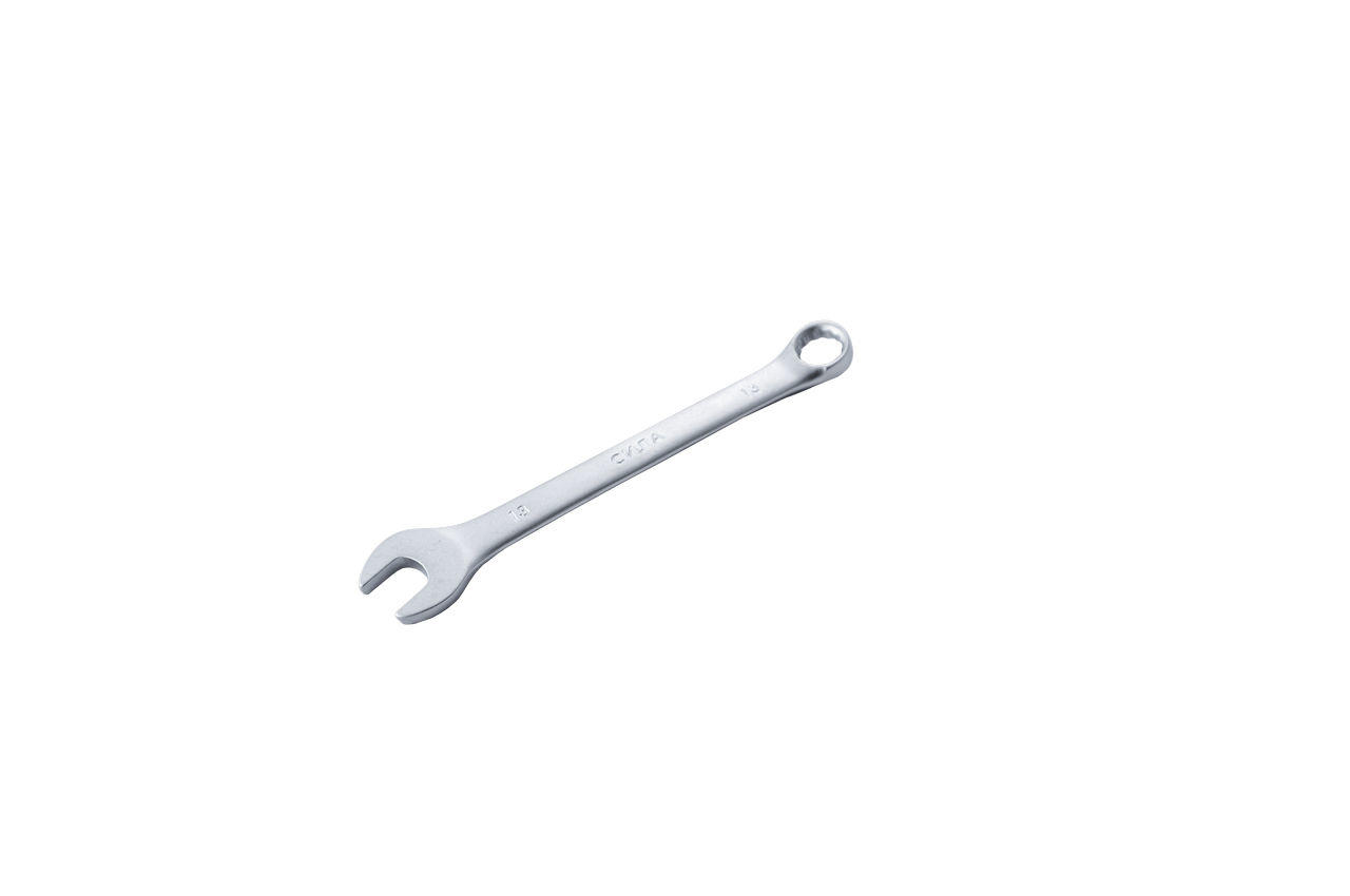 Ключ комбінований. Це якісне поєднання двох найбільш поширених видів ключів - гучного і ріжкового. Обидві головки мають однаковий розмір. Ключ виготовляється з легованих хромванадієва сплаву, що забезпечує високі експлуатаційні характеристики.