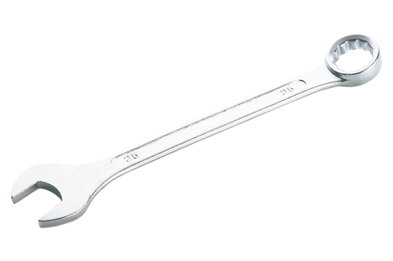 Ключ комбінований. Це якісне поєднання двох найбільш поширених видів ключів - гучного і ріжкового. Обидві головки мають однаковий розмір. Ключ виготовляється з легованих хромванадієва сплаву, що забезпечує високі експлуатаційні характеристики. Розмір 25 мм