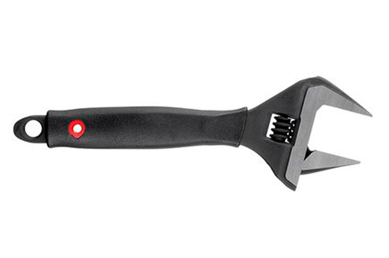 Ключ повністю виготовлений з хром-ванадієвої сталі зі спеціальним захисним покриттям темного кольору. Рукоятка додатково покрита термопластичной гумою. Розмір зіву ключа регулюється в межах 0-38 мм. Градуйована шкала, у вигляді насічок і цифр, нанесена на голівку ключа. Розмір: 0-38 мм; Довжина ключа: 200 мм; Покриття рукоятки: термопластичная гума