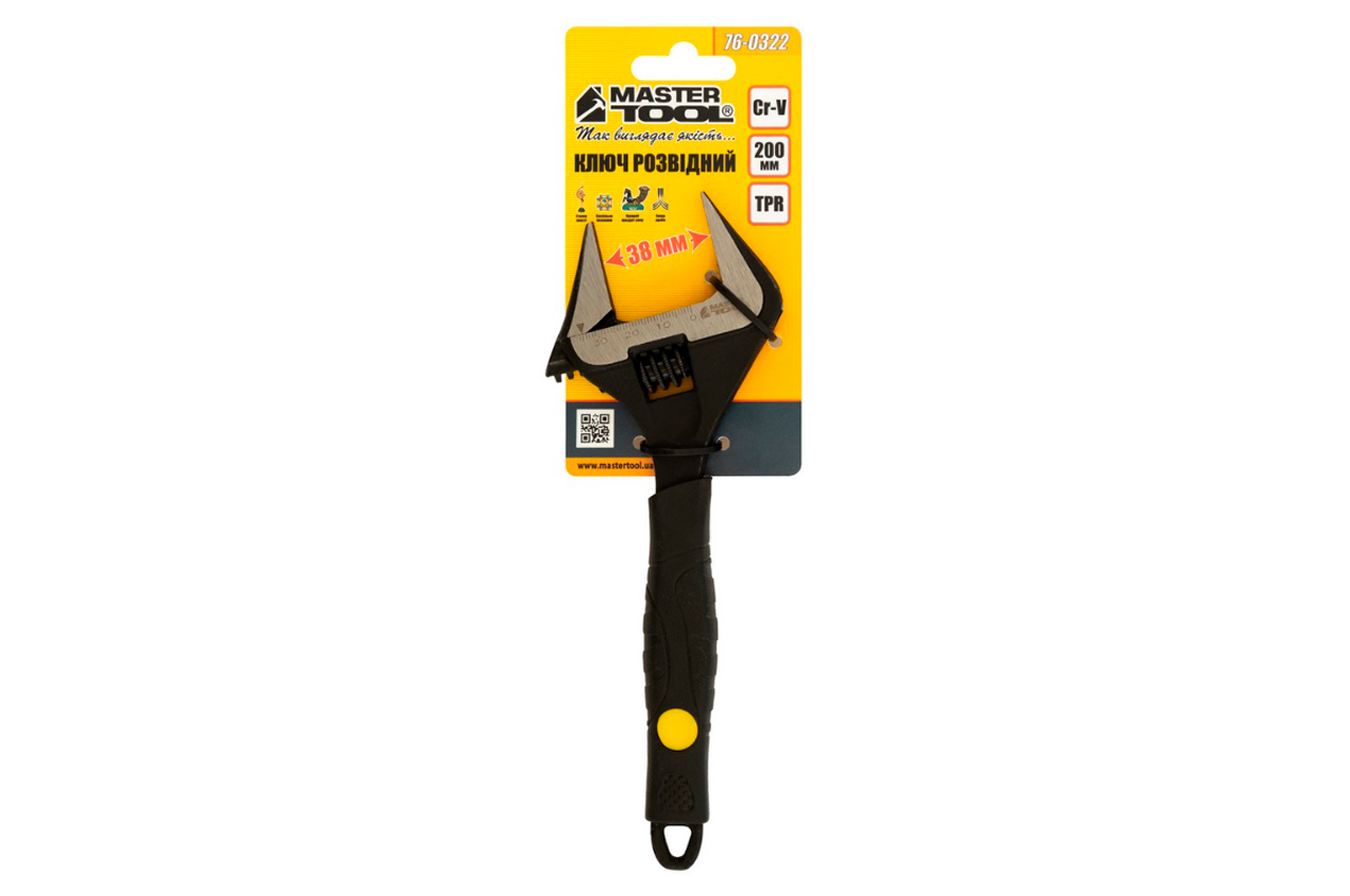 Ключ розвідний Mastertool - 200 мм (0-38 мм) розширений захоплення