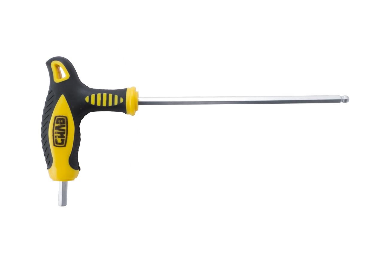 Його можна використовувати для будь-яких видів кріплень, що мають внутрішній профіль з шістьма гранями. Конструкція такого інструменту: Т-подібний стрижень із кульовим наконечником. Використовується, зокрема, у машинобудуванні, меблевій, авіаційній та автомобільній та велопромисловості. Матеріал: хром-ванадієва сталь, термопластична гума. Розмір 5 мм