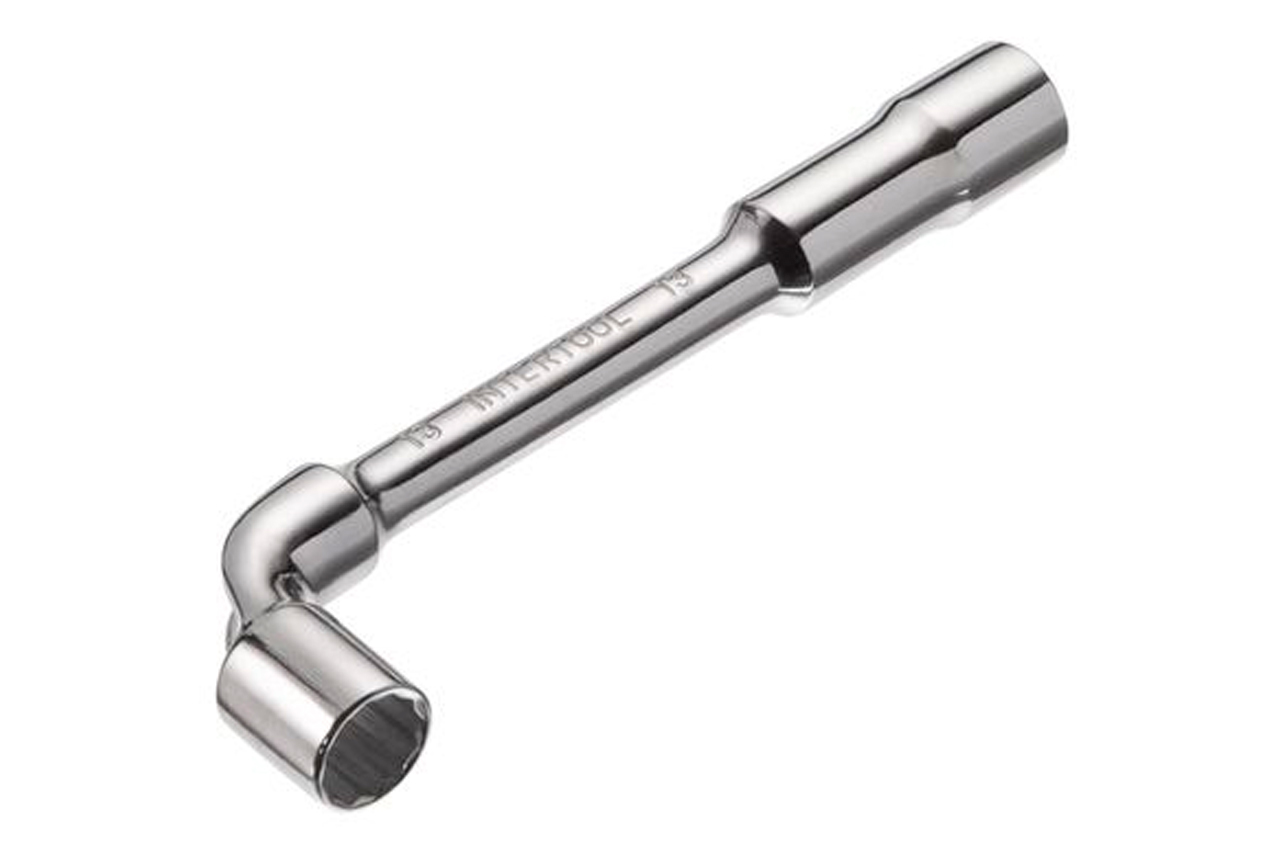 Ключ торцевий з отвором L-подібної форми. Обидві головки мають однаковий розмір (довгий кінець має 6 граней, а короткий 12). Розмір ключа: 13 мм