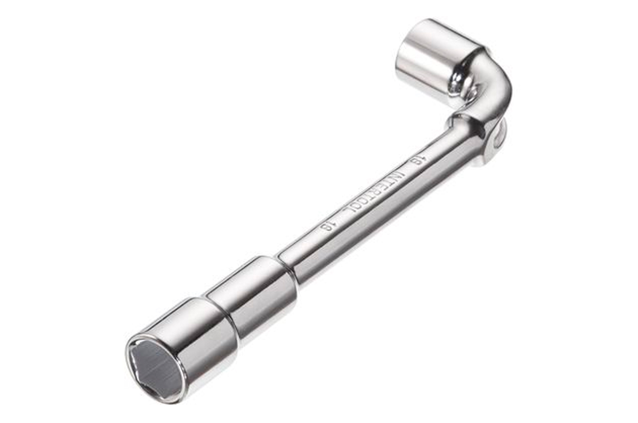 Ключ торцевий з отвором L-подібної форми. Обидві головки мають однаковий розмір (довгий кінець має 6 граней, а короткий 12). Розмір ключа: 18 мм
