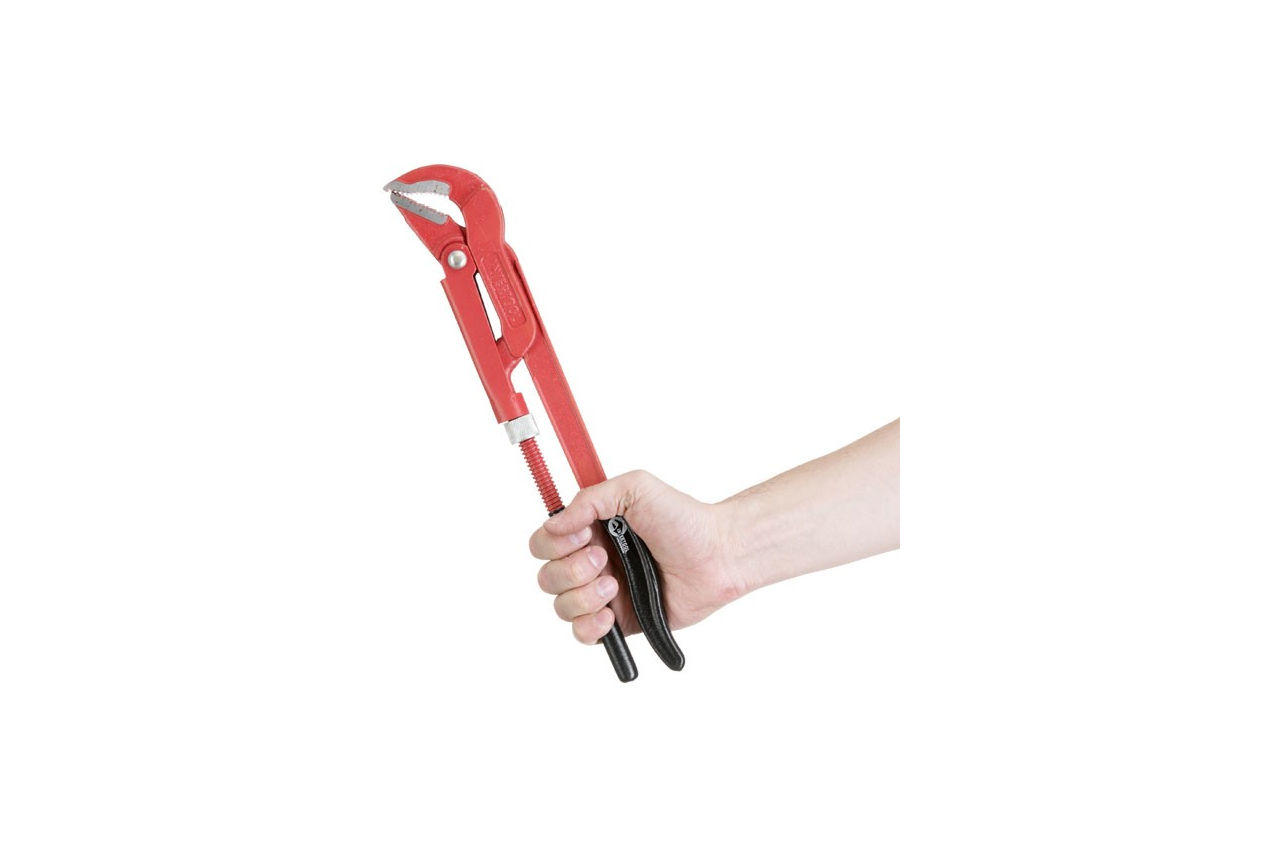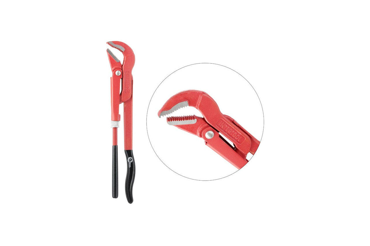 Застосовується практично у всіх видах ремонтно-сантехнічних робіт. Губки розташовані під кутом 45 ° до ручок. Діаметр захоплення регулюється за рахунок рухомого нижнього важеля. Виготовлений з високоякісної інструментальної сталі, що гарантує високу зносостійкість і захист від корозії в процесі роботи. Ергономічна прогумована рукоятка забезпечує зручність захоплення інструменту. Розміри: 1.5 "
