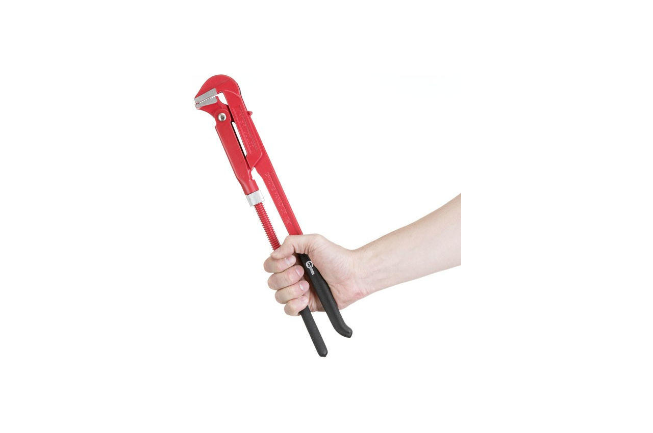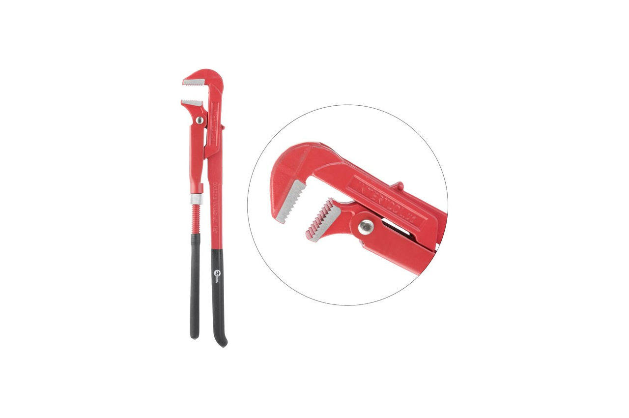 Ключ трубний важільний застосовується для ремонтно-сантехнічних робіт. Губки розташовані під кутом 90 ° до ручок. Ключ дозволяє обертати округлі робочі поверхні типу труб, муфт, гайок, гвинтів, головок кранів. Діаметр захоплення регулюється за рахунок рухомого нижнього важеля. Виготовлений з високоякісної інструментальної сталі, що гарантує високу зносостійкість і захист від корозії в процесі роботи. Ергономічна прогумована рукоятка забезпечує зручність захоплення інструменту. Розміри: 1.5 "