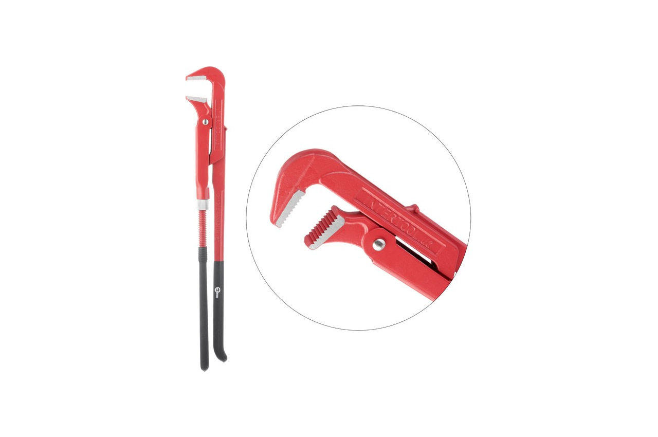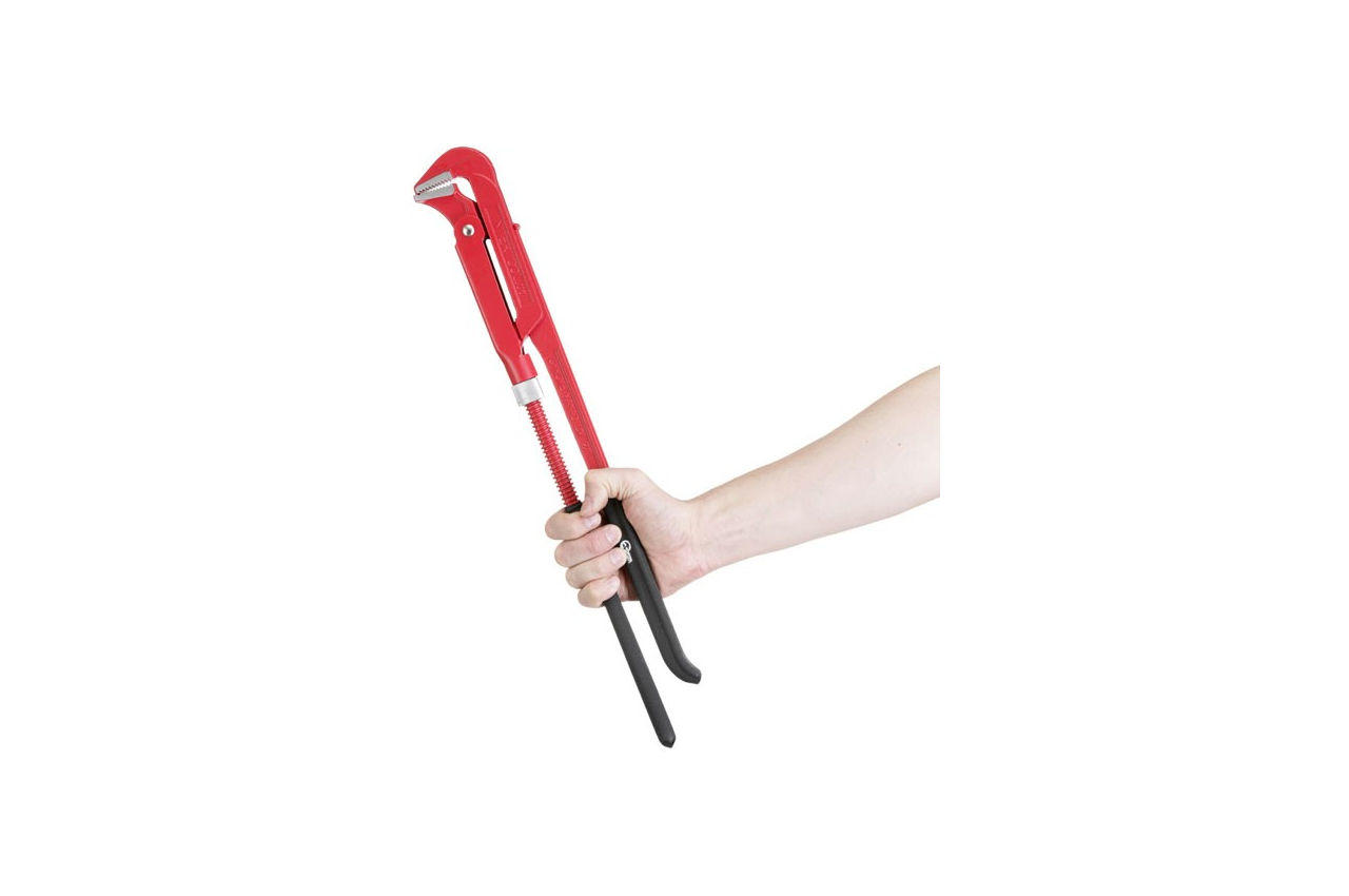 Ключ трубний важільний застосовується для ремонтно-сантехнічних робіт. Губки розташовані під кутом 90 ° до ручок. Ключ дозволяє обертати округлі робочі поверхні типу труб, муфт, гайок, гвинтів, головок кранів. Діаметр захоплення регулюється за рахунок рухомого нижнього важеля. Виготовлений з високоякісної інструментальної сталі, що гарантує високу зносостійкість і захист від корозії в процесі роботи. Ергономічна прогумована рукоятка забезпечує зручність захоплення інструменту. Розміри: 2 "