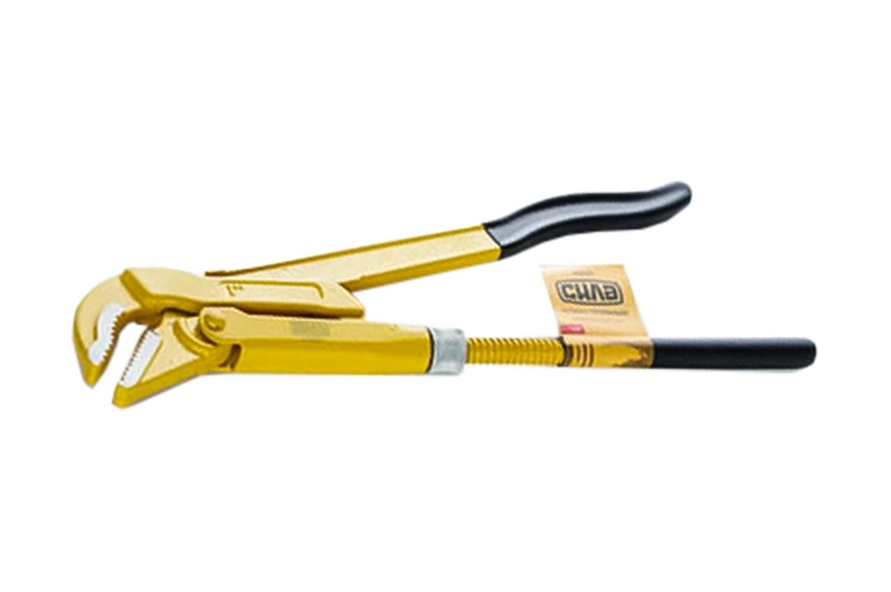 Призначений для захоплення деталей широкого діапазону перерізів. Виготовлений з хром-ванадієва сталь. Матеріал рукоятки: термопластичная гума; Тип губок: 45 °; Розмір ключа 1,5"