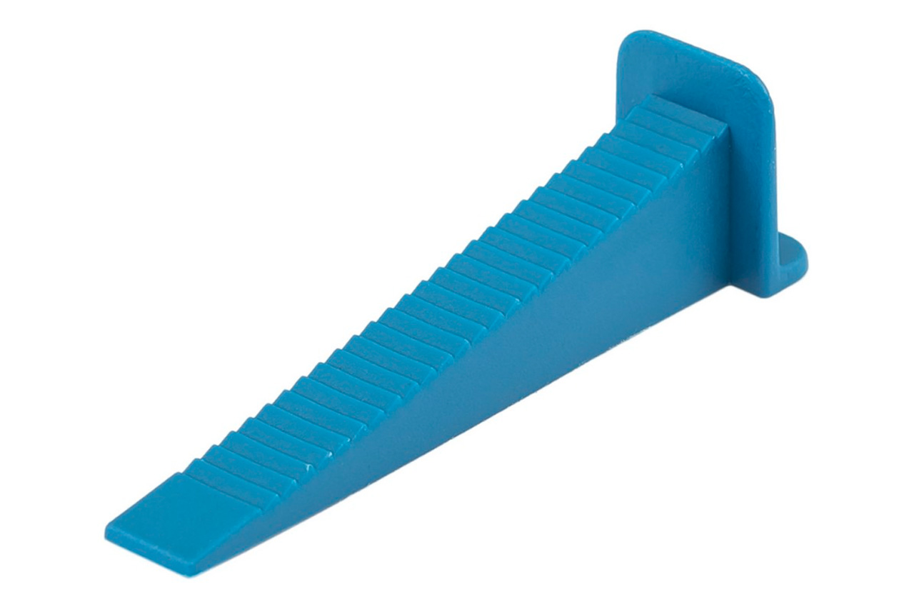 Клин для вирівнювання підлог Mastertool - це приладдя для фіксації суміжних плиток. В процесі роботи клин щільно вганяється в основу СВП вручну чи спеціальним ключем, ідеально вирівнюючи площину обох плиток. Клин виготовлений з пластику, тому ймовірність пошкодження поверхні повністю виключена. На верхній частині клину є зубчики, які надійно фіксують його в основі.