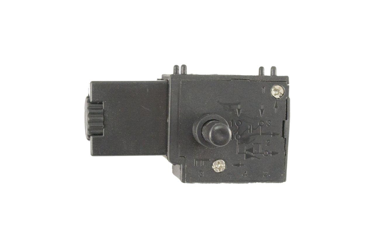 Кнопка включення для мережевої дрилі-шуруповерта. Електронне регулювання обертів від натискання на педаль включателя. Бічна кнопка фіксатор. Кріплення мережевих дротів - гвинтами.