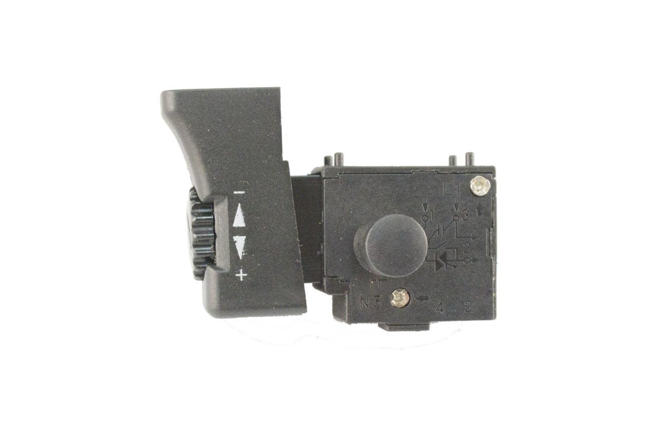 Кнопка болгарки DWT 125VS c кнопкою - фіксатором для тривалого включення і регулятором оборотів від натискання або колесом. Кріплення мережевих дротів - гвинтами, інші бистрозажімнимі фіксаторами.