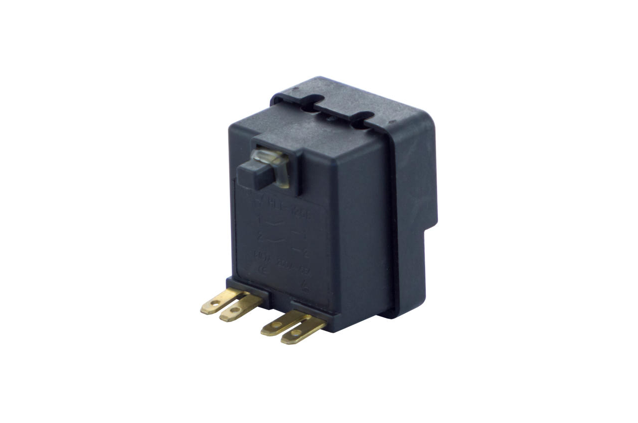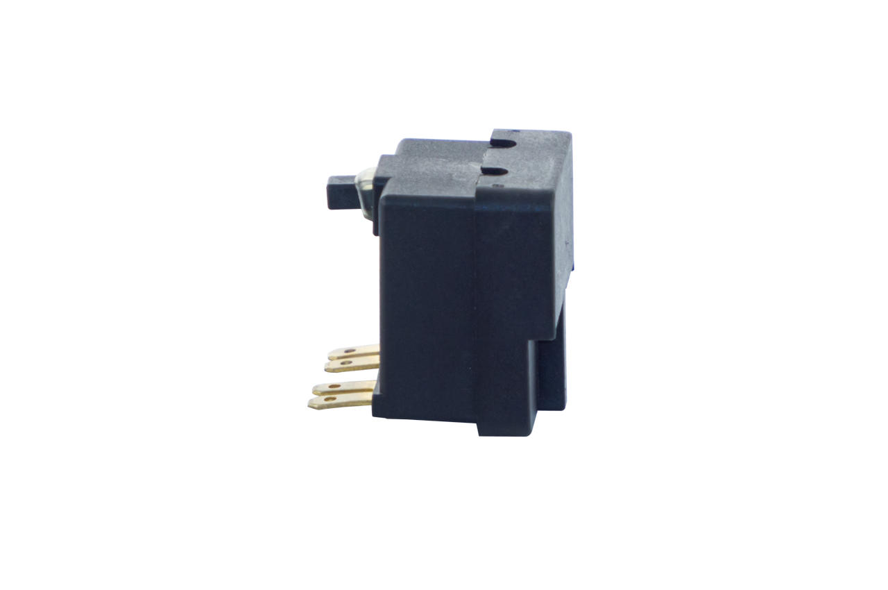 У вільному положенні контакти замкнуті, при натисканні - розмикаються. Верхній контакт.