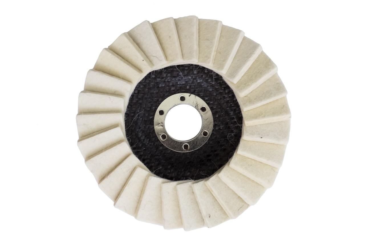 Пелюсточні круги призначені для шліфування поверхонь за допомогою ручного та стаціонарного обладнання. Повсть на «пелюстках» безпосередньо контактує з оброблюваною поверхнею, для зачистки зварних швів, кромки, видалення іржі, окалини та задирок, підготовки поверхні під фарбування. Діаметр кола 125 мм; Товщина 25 мм.