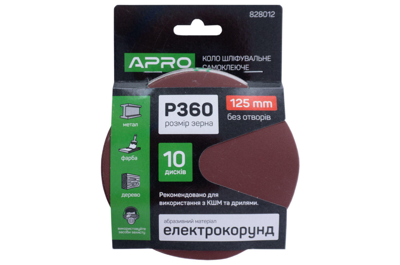 Коло шліфувальний на липучці Apro - 125 мм x Р360 (10 шт.)