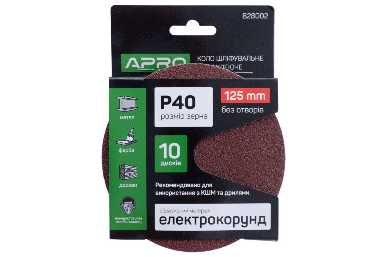 Коло шліфувальний на липучці Apro - 125 мм x Р40 (10 шт.)