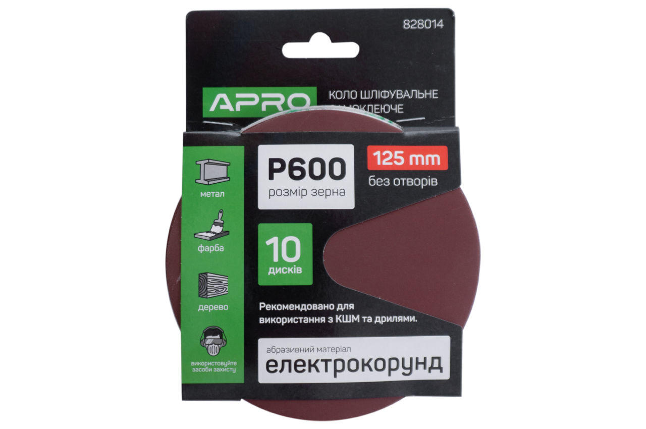 Коло шліфувальний на липучці Apro - 125 мм x Р600 (10 шт.)