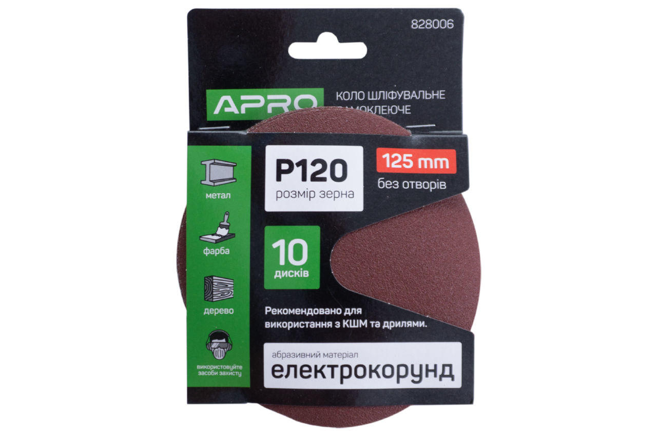 Коло шліфувальний на липучці Apro - 125мм x Р120 (10 шт.)