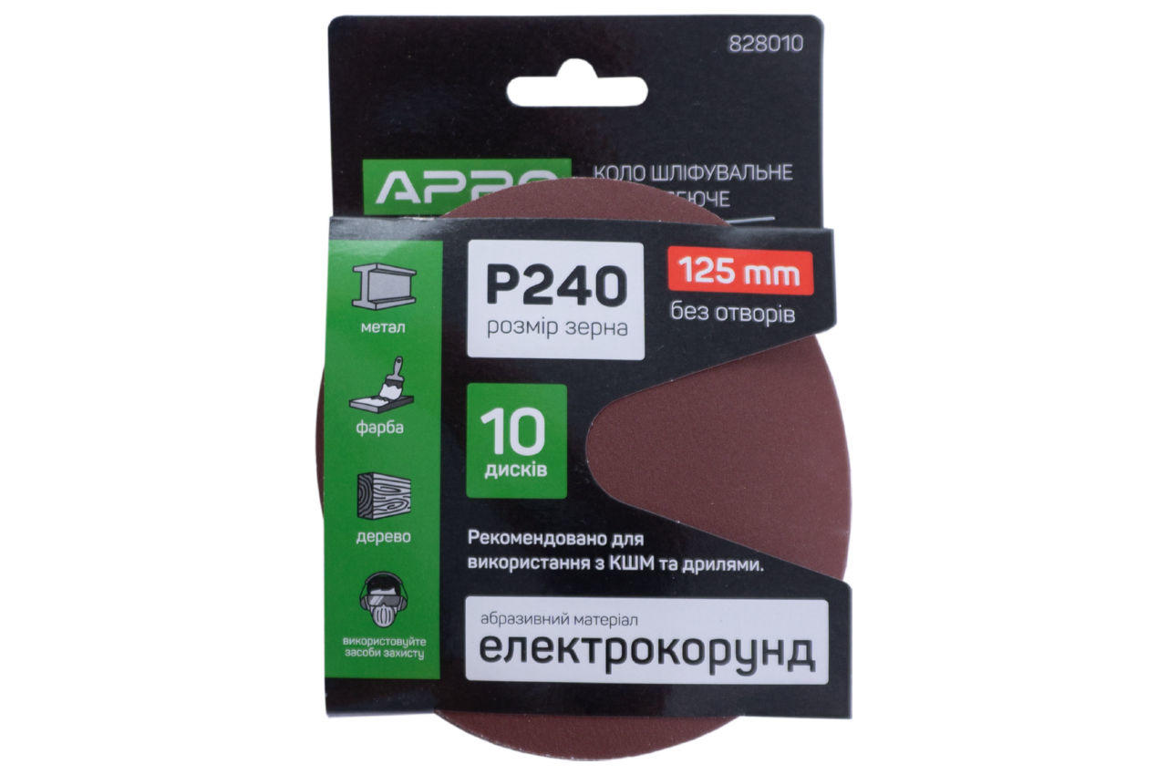 Коло шліфувальний на липучці Apro - 125мм x Р240 (10 шт.)