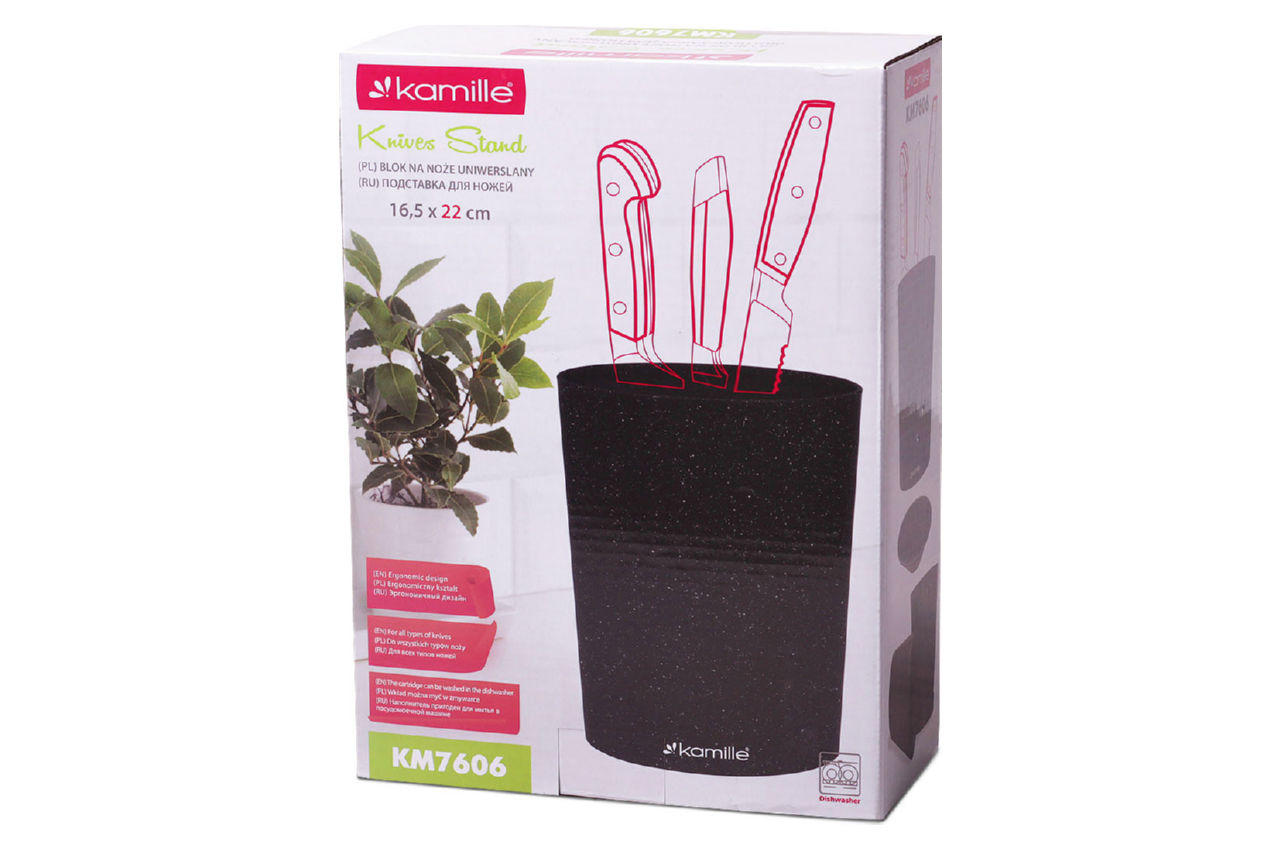 Підставка для ножів дозволяє максимально дбайливо зберігати ножі. Усередині підставки розташовані поліпропіленові роздільники, завдяки чому вставити в неї ніж можна будь-яким чином. Підставка підходить як для звичайних металевих, так і для керамічних ножів.