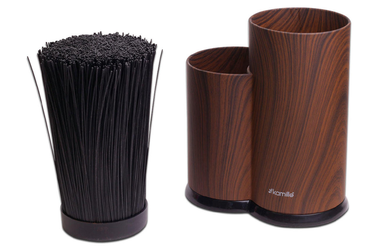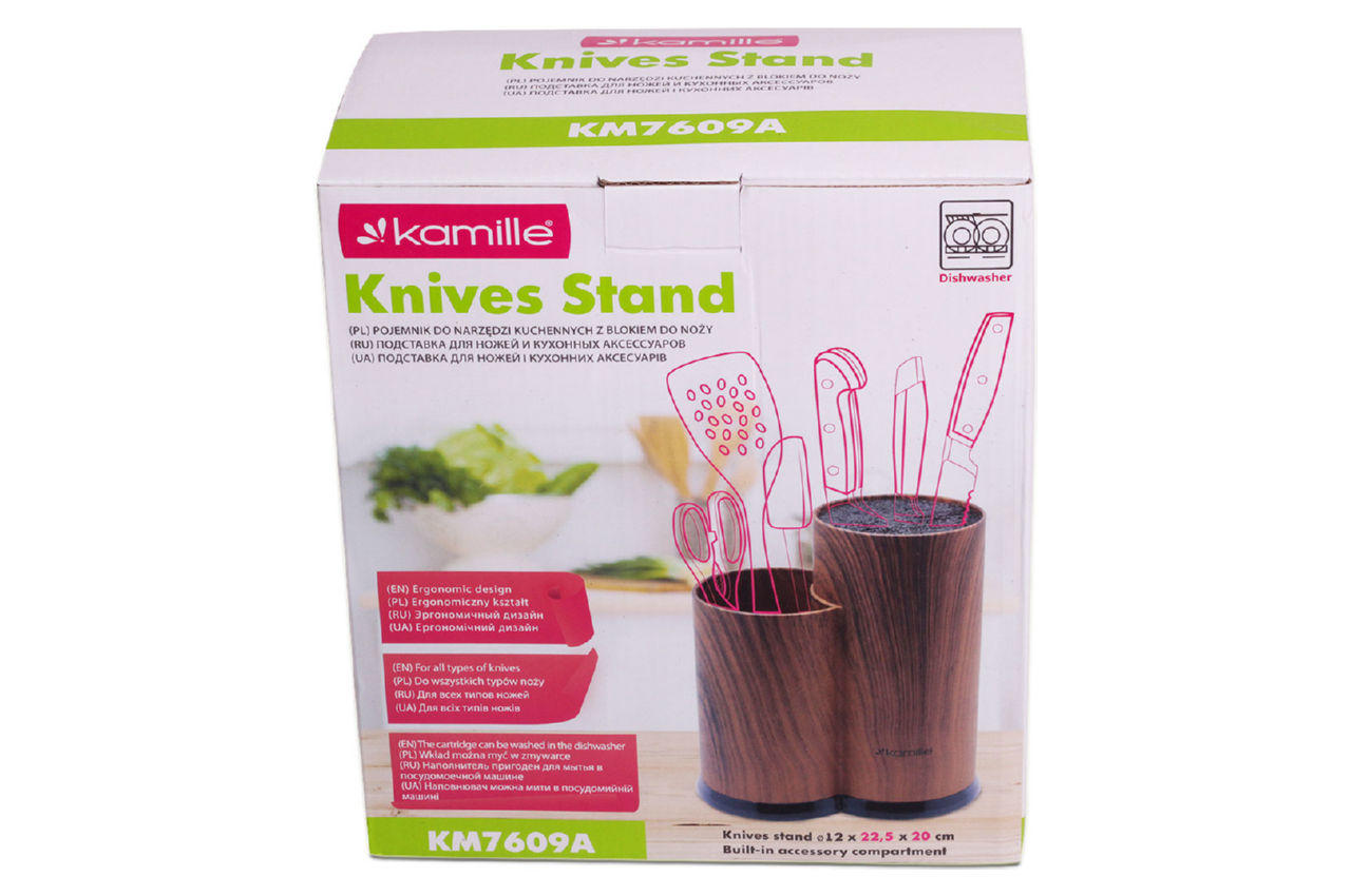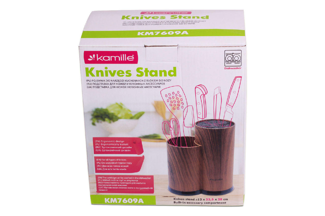 Підставка для ножів і кухонного приладдя дозволяє максимально дбайливо зберігати ножі і аксесуари для кухні. Всередині підставки розташовані поліпропіленові роздільники, завдяки чому вставити у неї ніж і кухонні прилади можна будь-яким чином. Підставка підходить як для звичайних металевих, так і для керамічних ножів та кухонного приладдя.