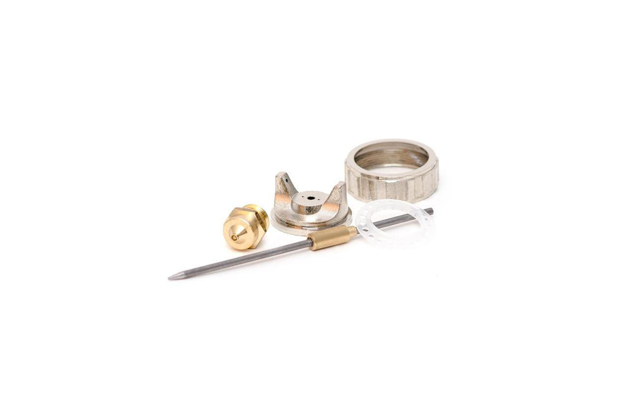 Змінний комплект складається з сопла, повітряної голівки, голки і прокладки. Залежно від в'язкості матеріалу Ви можете вибрати різну по діаметру форсунку 1,3; 1,5; 1,8; 2,0; 2,2; 2,5 мм. Цей набір також може використовуватися як заміна зношених деталей Вашого фарбопульта. Підходить до фарборозпилювачем системи HP, а саме до PT-0204, PT-0205, PT-0210, PT-0211. Сумісність: PT-0204, PT-0205, PT-0210, PT-0211; Діаметр форсунки: 2.2 мм