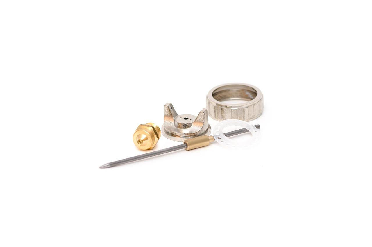 Змінний комплект складається з сопла, повітряної голівки, голки і прокладки. Залежно від в'язкості матеріалу Ви можете вибрати різну по діаметру форсунку 1,3; 1,5; 1,8; 2,0; 2,2; 2,5 мм. Цей набір також може використовуватися як заміна зношених деталей Вашого фарбопульта. Підходить до фарборозпилювачем системи HP, а саме до PT-0204, PT-0205, PT-0210, PT-0211. Сумісність: PT-0204, PT-0205, PT-0210, PT-0211; Діаметр форсунки: 2.5 мм