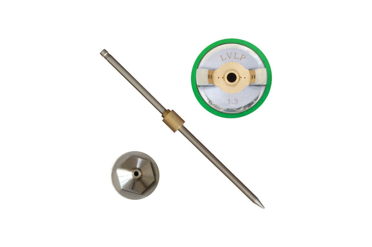 Змінний комплект складається з сопла, повітряної голівки і голки. Залежно від в'язкості матеріалу Ви можете вибрати різну по діаметру форсунку від 1,3 мм до 1,8 мм. Цей набір також може використовуватися як заміна зношених деталей Вашого фарбопульта. Підходить до фарборозпилювачем системи LVLP, а саме до PT-0131, PT-0132, PT-0133, PT-0134, PT-0135, PT-0136, PT-0143, PT-0144, PT-0148. Сумісність: PT-0131, PT-0132, PT-0133, PT-0134, PT-0135, PT-0136, PT-0143, PT-0144, PT-0148; Діаметр форсунки: 1.3 мм