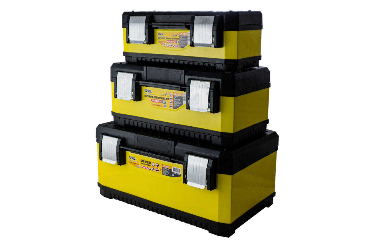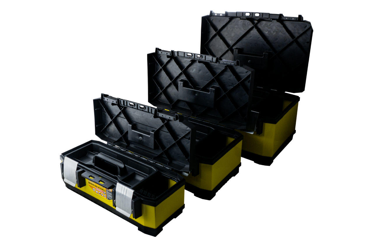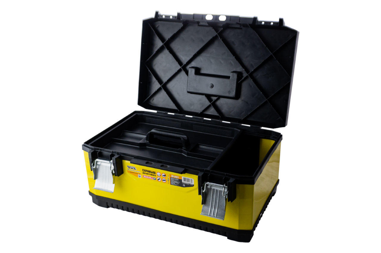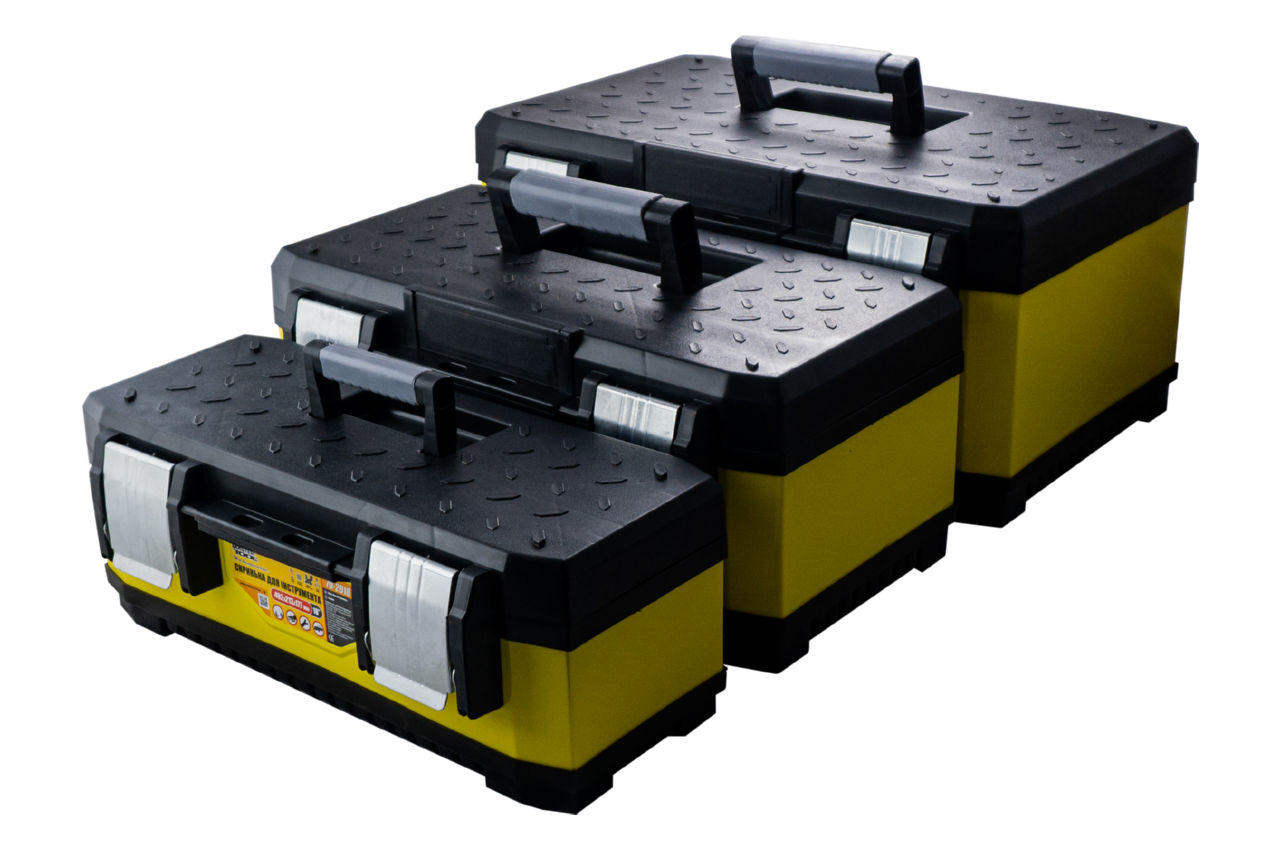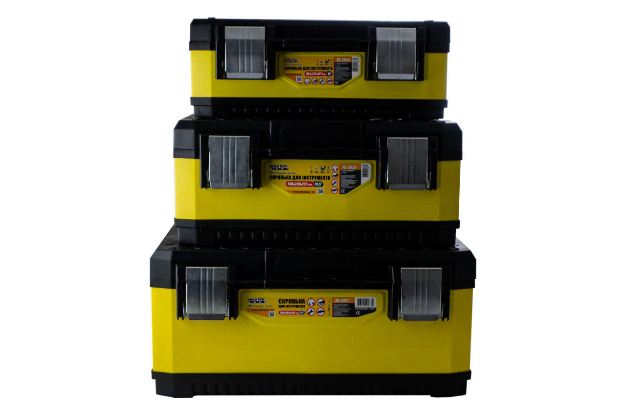 Застосовуються для зберігання інструментів. • протиударний корпус з АВS пластику та металу • металеві замки • зручна складна ручка • лоток для інструменту • можливість для підвісу навісного замка • для риболовлі, інструменту, будинку, автомобіля