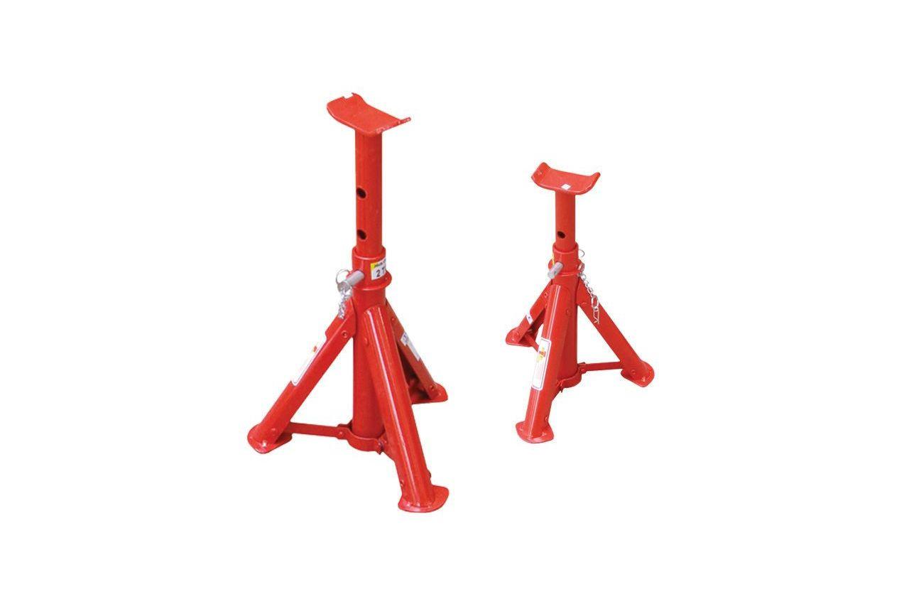 Комплект підставок під машину розкладних GT0403 призначений для фіксації та страховки автомобіля при його піднятті за допомогою домкрата. Даний комплект підставок актуальний при необхідності провести профілактичні або ремонтні роботи в машині. Автомобільні підставки незамінні у випадках, коли немає можливості використовувати естакаду або яму. Найменша висота підйому становить 270 мм, а найбільша - 360 мм. Крім того, дані підставки є розкладними, що істотно спрощує завдання їх зберігання і транспортування. А наявність спеціального запобіжника забезпечує безпеку і надійність в роботі. Висота підйому: 270-360 мм; Максимальне навантаження: 2 т