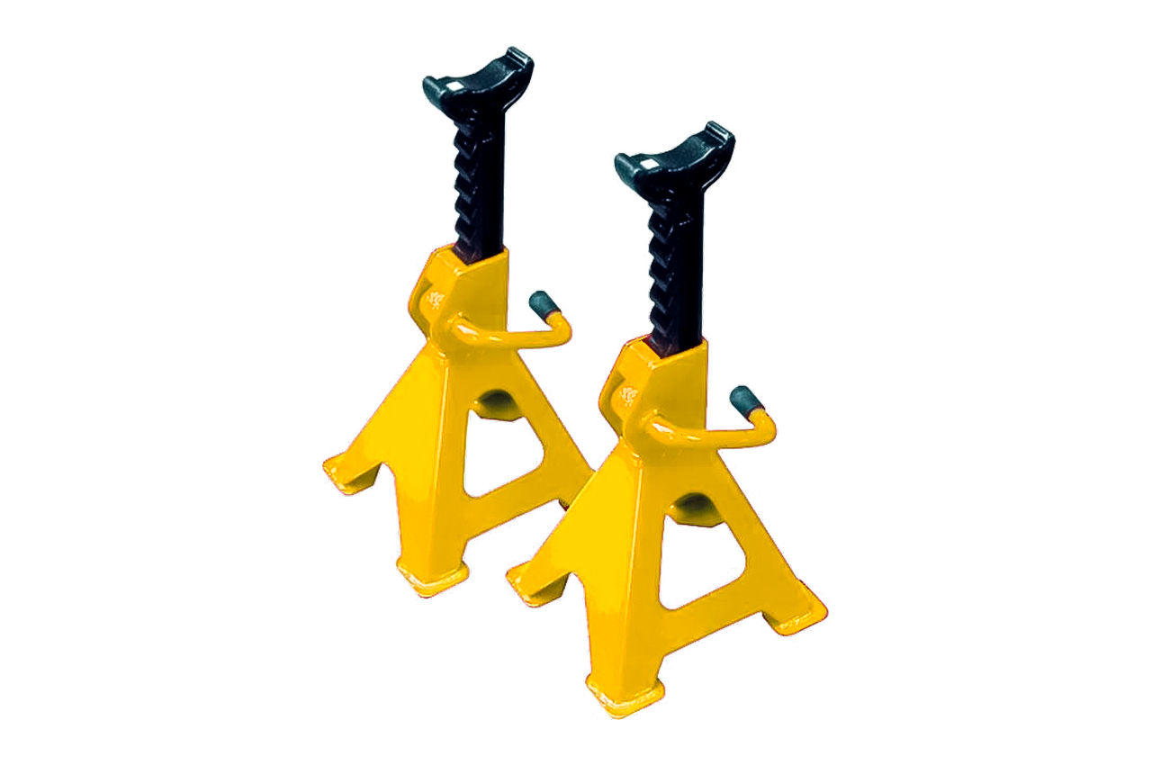 Опорні стійки - професійний інструмент, призначений для утримування, фіксації і страховки автомобіля, при піднятті домкратом, під час проведення діагностичних і ремонтних робіт. У комплект входить дві опорні стійки вантажопідйомністю 3 тонн. Особливістю модель є висота підхоплення, складова 280мм і висота підйому 400мм. Конструкція являє собою підставу з фіксуючий механізм, і литий висувною штангою, яка має косі зубці й опорну площадку. На підставі розташована компактна ручка, яка фіксує штангу в обраному положенні. Для фіксації опорної стійки на поверхні, використовуються вигнуті майданчики малої ширини, що забезпечує надійну стійкість конструкції. Підстава виконано з міцної загартованої сталі, лакофарбове покриття якої, має корозійну захист, що забезпечить тривалий термін служби. Вага 6 кг. Комплект складається з 2 штук. Максимальна висота підйому: 425мм; Матеріал опори: сталь; Мінімальна висота підйому: 270мм; Тип опори: механічний