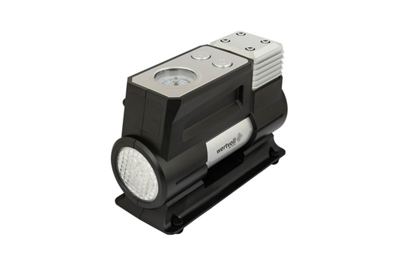 Портативний компресор автомобільний Wertvoll АС-2145. Чудовий помічник в дорозі, подорожі, відпочинку, для підкачки шин, матраців, м’ячів та інших предметів. На корпусі розміщений манометр, для відображення поточного тиску, та LED-ліхтар, допоможе в темну пору підсвітити при необхідності. В комплекті йдуть 4 адаптери та сумка для зберігання. Потужність 150 Вт Продуктивність при 0 бар 45 л/хв Максимальний тиск 10 бар Макс. Споживчий струм 12 А